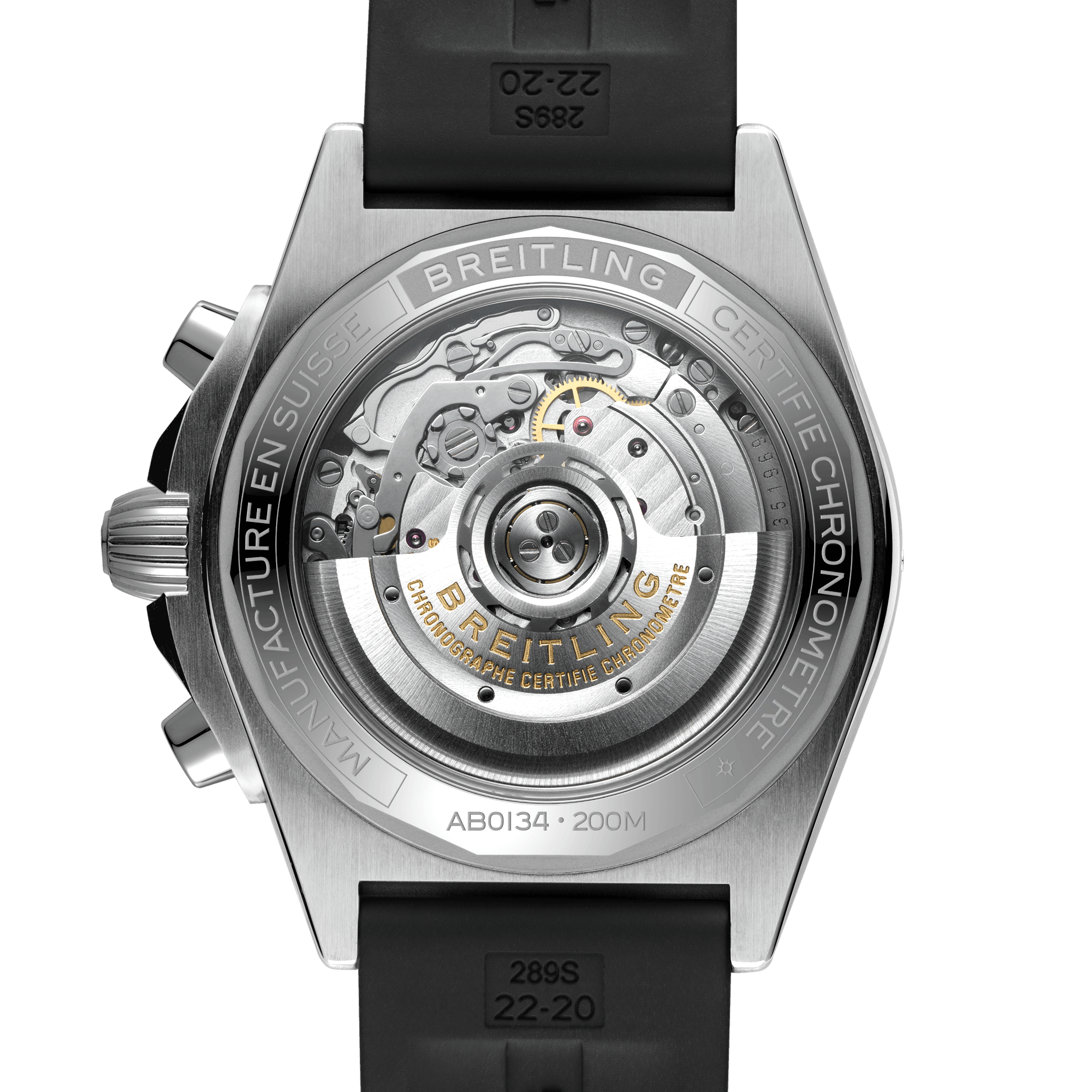 Unworn watch Breitling Chronomat B01 42, case brushed and polished Stainless Steel and Diamonds, Reference AB0134721G1S1. A bold and dynamic timepiece that embodies the spirit of modern adventure and technical excellence. Crafted with meticulous attention to detail, these timepieces are a combination of robust functionality and contemporary style, designed to meet the needs of today’s active lifestyle. The striking Cream dial features contrasting silver hands with luminous fill and applied polished index hour markers with luminous fill for exceptional legibility at a glance. Complete with chronograph black sub-dials and “B” emblem below the 12 o’clock position this watch is both functional and stylish. Black dial flange with Tachymeter scale and fine printed minute/seconds track intervals on the outer perimeter dial. Date window located at the 6 o’clock position. Small seconds sub-dial at 9 o’clock. The dial closed by a Cambered Scratch-resistant Sapphire Crystal with glare-proofed both sides. The transparent sapphire crystal case back reveals the mesmerizing operation of the movement. The polished Stainless Steel Screw-locked “onion” crown with two gaskets, a classic Chronomat feature named for its fluted-dome shape allows for easy adjustments. On its end there is Breitling logo is applied. Chronograph/Stopwatch functions: column wheel mechanism; the slender seconds hand has a special design, having an arrowhead with luminescent filling and the manufacturer’s logo “B” on the other side; 30-minute counter sub-dial located at the 3 o’clock position; 12-hour counter sub-dial at the 6 o’clock position. On the right side, case also houses the Stainless Steel chronograph buttons a cylindrical shape. The watch is equipped polished Stainless Steel unidirectional-ratcheted rotating bezel ring with brushed finished 1/4 hour rider tabs. The bezel and lugs are decorated with round cut diamonds. The Model comes with Breitling Caliber B01 contains 47 Jewels and has an approximate power reserve of 70 hours. The watch presented on the Black Rubber Strap with Stainless steel Folding Clasp. The water resistance is up to 200m/660ft.