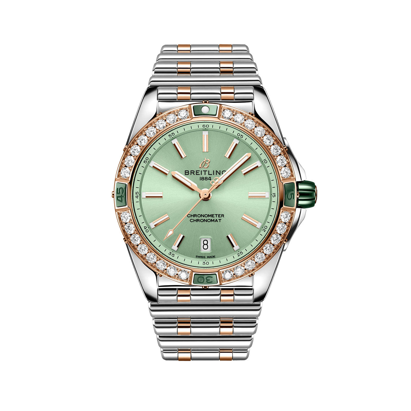 Unworn Breitling Super Chronomat B01 UB0136251B1S1, 44 mm, Black dial, Stainless steel & 18k red gold case. Unidirectional ratcheted rotating bezel. Sapphire, glareproofed both sides crystal. Breitling 01 (Manufacture) calibre, Self-winding mechanical movement, 70 hrs power reserve, 47 jewels. Rubber strap with Folding clasp. Water resistance 200 m.