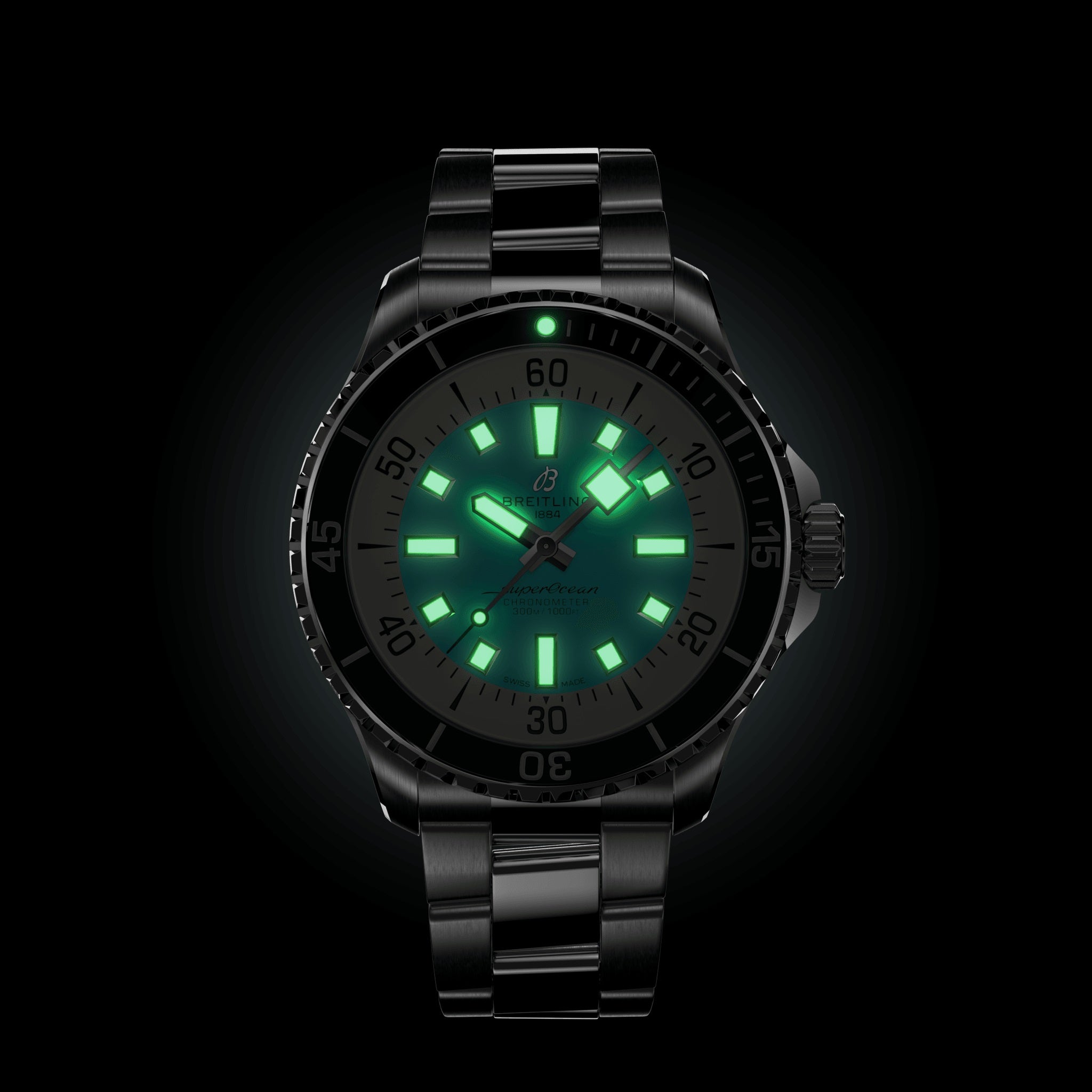 Introducing Unworn Breitling Watch Superocean Automatic 44, Stainless steel case, Reference A17376211C1S1: a fusion of style and functionality, designed to accompany you on every underwater adventure and beyond. Crafted with precision engineering and unmistakable Breitling flair, this timepiece is not just a watch—it’s a companion for the explorers of the deep and the adventurers of life. The 44mm case is made from durable brushed and polished finished Stainless steel and provides the perfect balance of appearance and comfort on the wrist. Sporty, fresh and vibrant, this model features a matte Turquoise main dial which is decorated a Silver-tone “B” logo at 12 o’clock and large silver luminous hour markers. It features an impressive Silver flange with a clearly readable minute scale, on which every 10 minutes are marked with large black Arabic numerals. The dial is decorated with polished Silver-tone hour and minute hands with luminous fill. An elegant Silver-tone central seconds hand with a luminous black circle and a tip harmoniously complements them. The watch has a screw-locked screwing down crown of polished Stainless steel with two spacers. Its ribbed edge provides a comfortable grip. The Breitling logo is applied to the end of the crown. The dial closed by a convex sapphire crystal, glare-proofed both sides and solid Stainless steel case back. Unidirectional Stainless steel ratcheting bezel with ribbed edge, adorned with a polished Black ceramic ring with luminous starting point and dive scale displays precise dive times. Breitling Caliber 17 contains 26 Jewels and has an approximate power reserve of 38 hours. The model is presented on Breitling’s iconic and comfortable a brushed and polished finished Stainless steel Straight Metal bracelet, which fastens on Stainless Steel Push Button Folding Clasp. The water resistance is up to 300m (1000ft).
