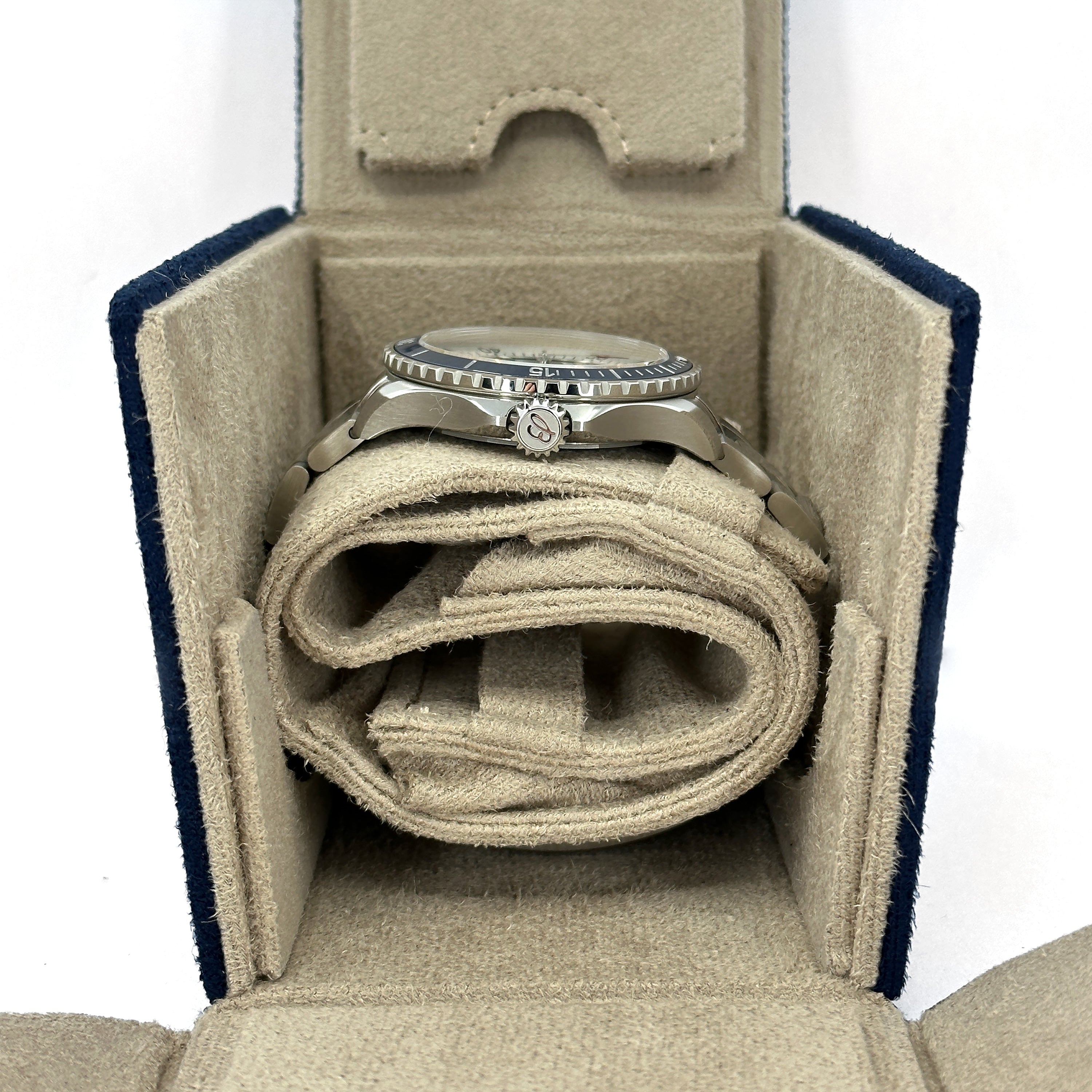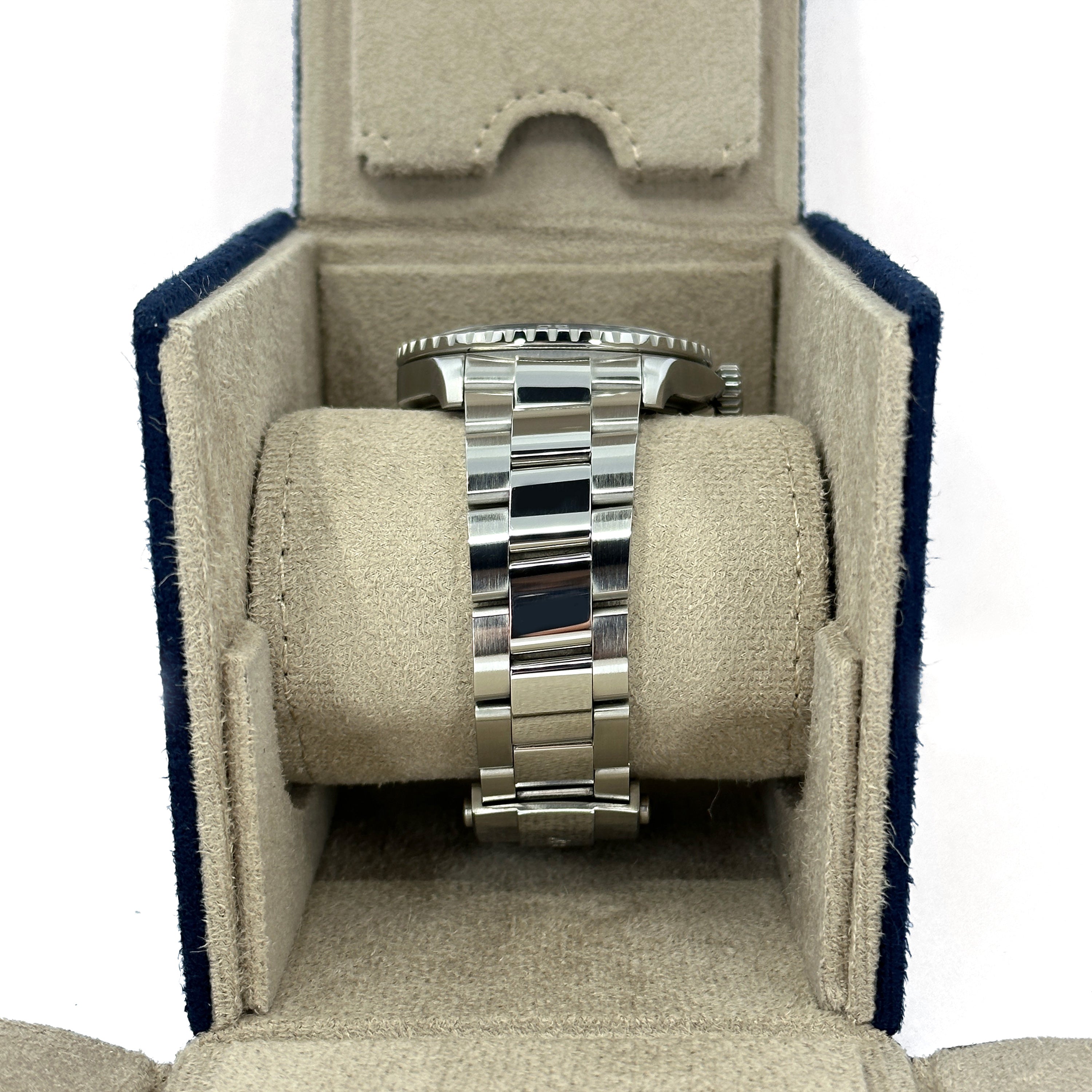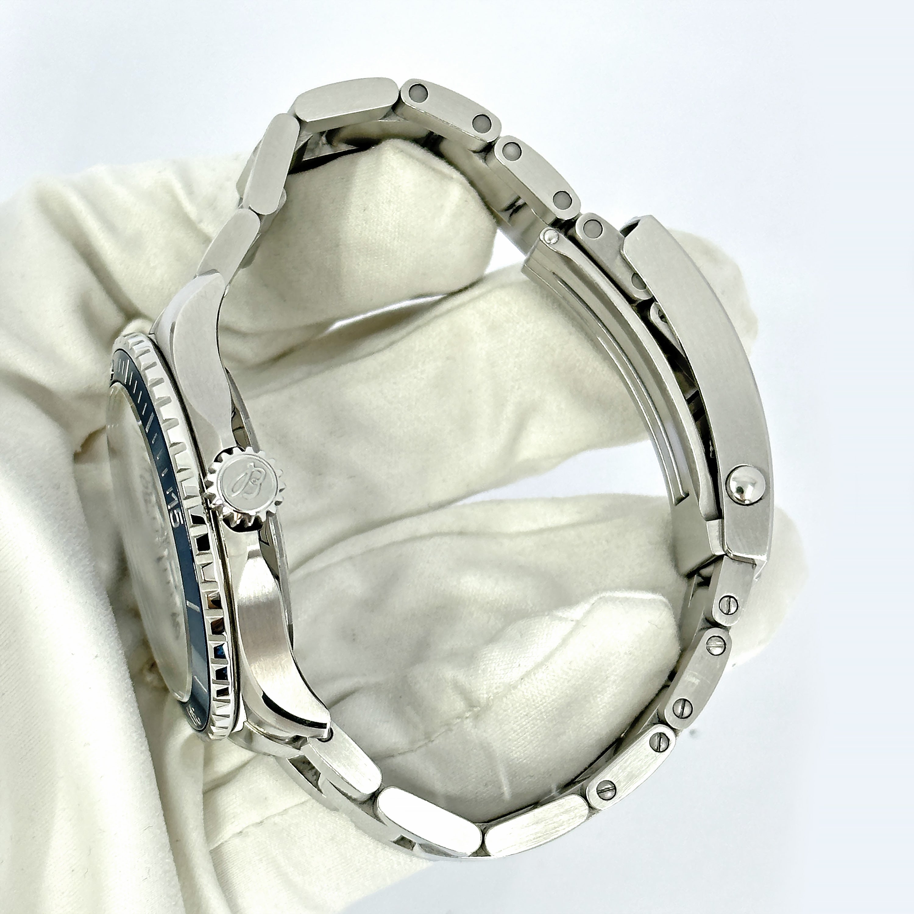 This Breitling Superocean Automatic Ref# A17375E71C1A1 comes ready to wear, featuring a brushed and polished stainless steel  case with a water resistance of up to 300m (1,000 ft). It has a reliable Breitling 17 self-winding mechanical movement with 26 jewel and 38 hours of power reserve. The watch case has a diameter of 42mm and thickness of 12.5mm. It comes equipped with a 22/18mm stainless steel metal bracelet. This unidirectional ratcheted Polished blue ceramic bezel with diving scale and luminous starting dot and cambered sapphire crystal with glareproof coating provides a perfect view. Watch is in used, mint condition.