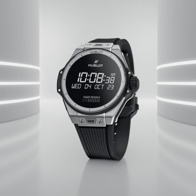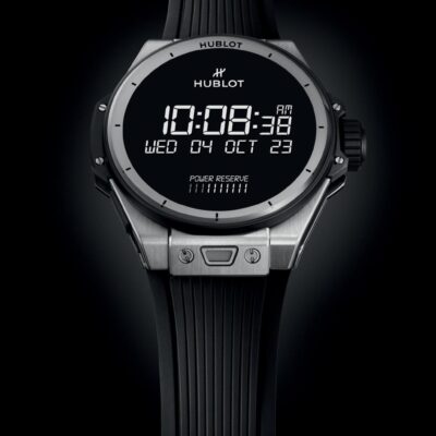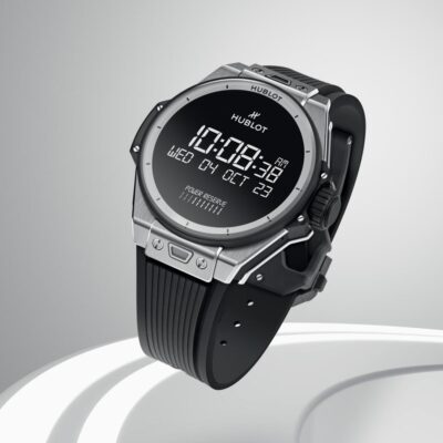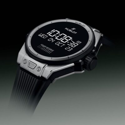 For those who want to have the quintessence of cutting-edge technology and elegant design readily available, the new Hublot Big Bang E Gen3 Titanium, satin and polished titanium, 44 mm, Reference 450.NX.1100.RX is the perfect choice. Strictness, conciseness, simplicity and sophistication of forms, combined with unsurpassed quality, are the main characteristics of these smart watches. Hublot’s customizable Digital Watch Face allows users to choose from a variety of watch faces and widgets, tailoring the watch’s appearance to their personal preferences. Featuring Wear OS by Google (Wear OS 3), the watch offers broad compatibility with Android and iOS smartphones, allowing seamless integration with your mobile devices (such as Google Pay). Moreover, they come with advanced activity tracking (heart rate, steps, calories burned, and sleep quality). You will also be able to receive real-time notifications to keep you updated on your calls, messages and important events, right on your wrist. The dial closed by a Scratch-resistant Sapphire Crystal with Anti-reflective Treatment. The case back of the watch is also made of sapphire crystal, allowing you to observe the fantastic work of the watch movement. The black titanium crown has a screw-down feature and contoured grooves for better grip. The watch is powered by the advanced brain of the Qualcomm® Snapdragon Wear™ 4100+ from the manufacturer Hublot. They are presented on an elegant and easy-to-wear Strap of Black Structured Lined Rubber, with a Composite Deployant Buckle Clasp. The water resistance is up to 30m/100ft (3ATM).