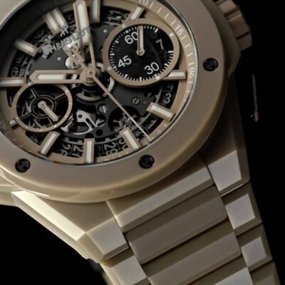 Unworn Hublot Big Bang INTEGRATED BEIGE CERAMIC 451.CZ.4620.CZ. 42 mm, Mat Beige Skeleton dial, Satin-finished and Polished Beige Ceramic case, Satin-finished and Polished Beige Ceramic with 6 H-shaped Titanium Screws bezel, HUB1280 UNICO calibre, Self-winding Chronograph Flyback Movement with Column Wheel movement, 72 h power reserve, Satin-finished and Polished Beige Ceramic Bracelet with Black-plated Titanium Deployant Buckle Clasp. Water resistant to 100 m.