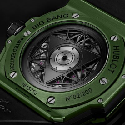 - Bezel Material: Satin-finished Exagonal Decor and Polished Green Ceramic Designed by « Maxime Büchi »