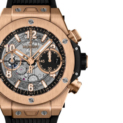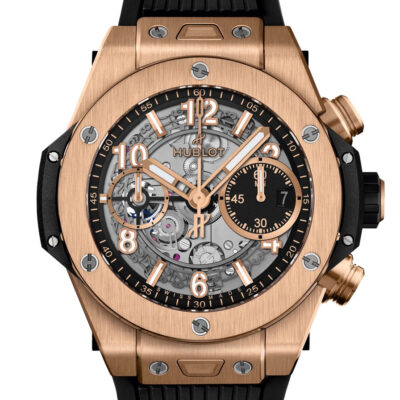 At the heart of this timepiece is Hublot’s advanced HUB1280 UNICO Manufacture self-winding chronograph flyback movement with a column wheel, showcasing the brand’s prowess in watchmaking. The movement is visible through the sapphire crystal case back, adding an intriguing aesthetic element. It offers a substantial power reserve of 72 hours, ensuring reliability and precision.