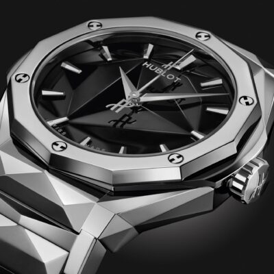 Unworn Hublot Classic Fusion ORLINSKI BRACELET TITANIUM 550.NS.1800.NS.ORL22. 40 mm, Polished Faceted Black dial, Polished Titanium case, Sapphire with Anti-reflective Treatment crystal, Polished Titanium 6 H-shaped Titanium Screws bezel, HUB1100 calibre, Self-winding Movement, 42 Hours power reserve, Polished Titanium Bracelet with Titanium Deployant Buckle Clasp. Water resistant to 50 m.