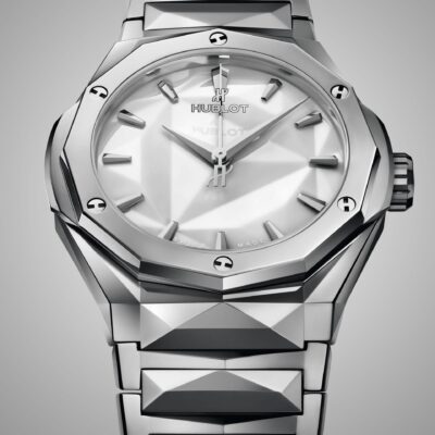 Unworn Hublot Classic Fusion ORLINSKI BRACELET TITANIUM WHITE 550.NS.2200.NS.ORL22. 40 mm, Polished Faceted White dial, Polished Titanium case, Sapphire with Anti-reflective Treatment crystal, Polished Titanium 6 H-shaped Titanium Screws bezel, HUB1100 calibre, Self-winding Movement, 42 Hours power reserve, Polished Titanium Bracelet with Titanium Deployant Buckle Clasp. Water resistant to 50 m.