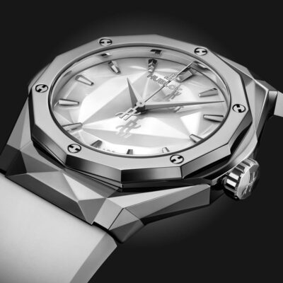 Unworn Hublot Classic Fusion Orlinski Titanium White 550.NS.2200.RW.ORL20. 40 mm, Polished Faceted White Dial, Polished Titanium case, Sapphire with Anti-reflective Treatment crystal, Polished Blue Ceramic with 6 H-shaped Black-plated Titanium Screws bezel, HUB1100 calibre, Self-winding Movement, 42 Hours power reserve, White Smooth Rubber Straps with Stainless Steel Deployant Buckle Clasp. Water resistant to 50 m.