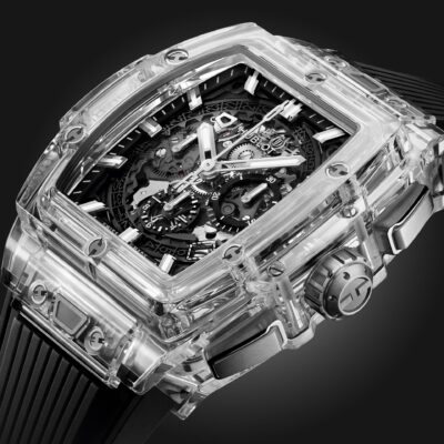 Unworn Hublot Spirit of Big Bang MAGIC SAPPHIRE 642.JX.0170.RX. 42 mm, Sapphire Crysta dial, Polished Sapphire Crystal case, Sapphire with Anti-reflective Treatment crystal, Polished Sapphire Crystal with 6 H-shaped Titanium Screws bezel, HUB4700 calibre, Self-winding Skeleton Chronograph Movement, 50hours power reserve, Black Structured Lined Rubber Straps with Titanium Deployant Buckle Clasp. Water resistant to 50 m.