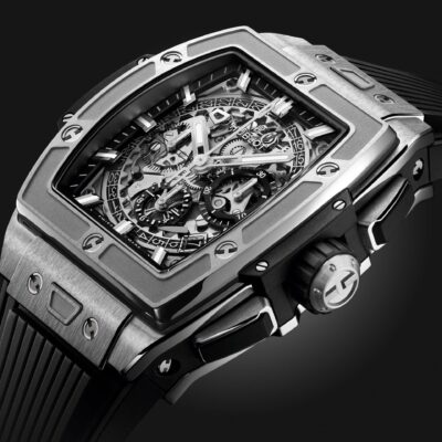 Unworn Hublot Spirit of Big Bang TITANIUM 642.NX.0170.RX. 42 mm, Sapphire dial, Satin-finished and Polished Titanium case, Sapphire with Anti-reflective Treatment crystal, Satin-finished, Polished and Microblasted Titanium with 6 H-shaped Titanium Screws bezel, HUB4700 calibre, Self-winding Skeleton Chronograph Movement, 50hours power reserve, Black Structured Lined Rubber Straps with Titanium Deployant Buckle Clasp. Water resistant to 100 m.