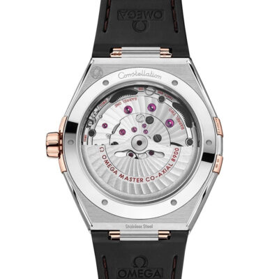 Unworn Omega Constellation CO‑AXIAL MASTER CHRONOMETER 131.23.41.21.11.001. 41 mm, Red dial, Steel ‑ Sedna™ Gold case, Black ceramic bezel, 8900 calibre, Automatic Movement, 60 hours power reserve, Leather strap Foldover clasp. Water resistant to 50 m.