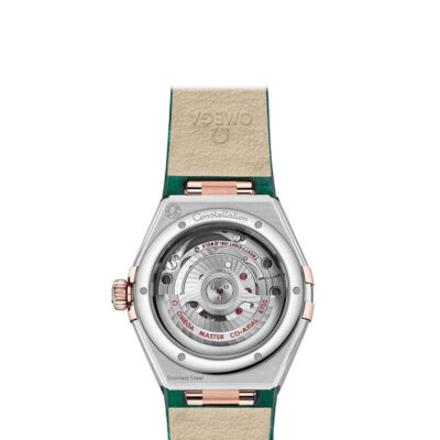 Unworn Omega Constellation CO‑AXIAL MASTER CHRONOMETER 131.28.29.20.99.001. 29 mm, Green dial, Steel ‑ Sedna™ Gold case, Sedna™ Gold bezel, 8700 calibre, Self Winding Movement, 50 Hours power reserve, Leather strap Pin buckle clasp. Water resistant to 50 m.