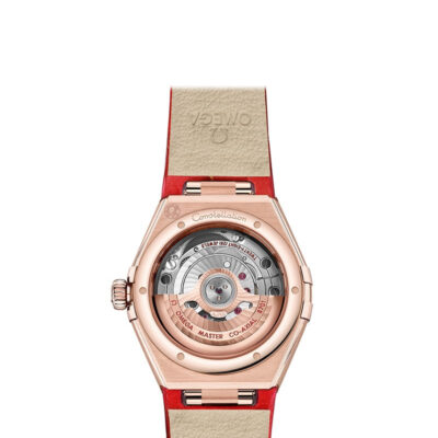 Unworn Omega Constellation CO‑AXIAL MASTER CHRONOMETER 131.53.29.20.99.003. 29 mm, Red dial, Sedna™ gold case, Sedna™ gold bezel, 8701 calibre, Self Winding Movement, 50 Hours power reserve, Leather strap Pin buckle clasp. Water resistant to 50 m.