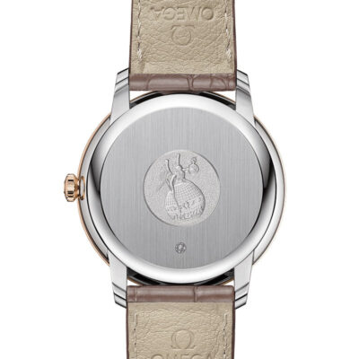 Unworn Omega De Ville PRESTIGE CO‑AXIAL CHRONOMETER 424.23.40.20.02.003. 39.5 mm, Silver dial, Steel ‑ red gold case, Red gold bezel, 2500 calibre, Self Winding Movement, 48 hours power reserve, Leather strap with Pin buckle clasp. Water resistant to 30 m.
