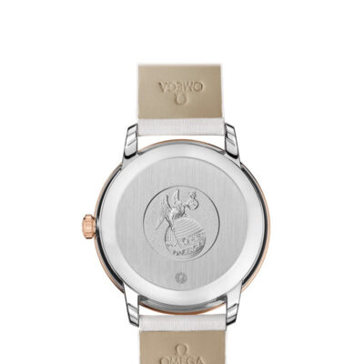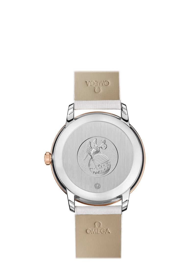 Unworn Omega De Ville PRESTIGE CO‑AXIAL CHRONOMETER 424.27.33.20.55.001. 32.7 mm, White dial, Steel ‑ red gold case, Red gold bezel, 2500 calibre, Self Winding Movement, 48 hours power reserve, Leather strap with Pin buckle clasp. Water resistant to 30 m.