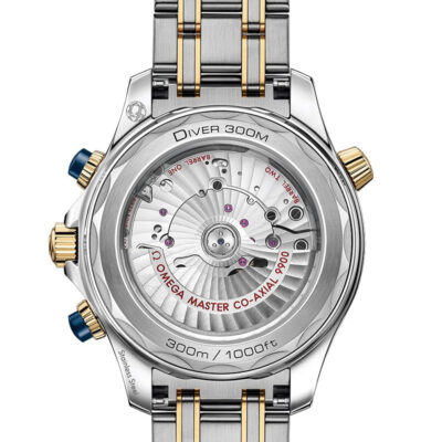 Unworn Omega Seamaster DIVER 300M CO‑AXIAL MASTER CHRONOMETER CHRONOGRAPH 210.20.44.51.03.001. 44 mm, Blue dial, Steel ‑ yellow gold case, Ceramic bezel, 9900 calibre, Self Winding Movement, 60 hours power reserve, Steel ‑ yellow gold bracelet with Foldover clasp. Water resistant to 300 m.