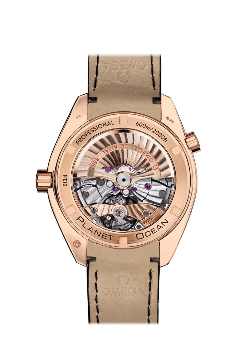 Unworn Omega Seamaster PLANET OCEAN 600M OMEGA CO‑AXIAL 232.58.42.21.01.001. 42 mm, Black dial, Red gold case, Red gold bezel, 8501 calibre, Self Winding Movement, 60 hours power reserve, Leather strap with Foldover clasp. Water resistant to 600 m.