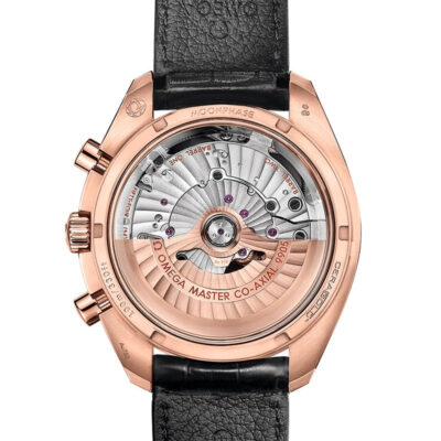 Unworn Omega Speedmaster MOONPHASE CO‑AXIAL MASTER CHRONOMETER MOONPHASE CHRONOGRAPH 304.63.44.52.01.001. 44.25 mm, Black dial, Sedna™ gold case, Black ceramic bezel, 9905 calibre, Automatic Movement, 60 hour power reserve, Leather strap Foldover clasp. Water resistant to 100 m.