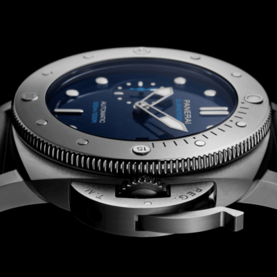 Unworn Men’s Watch Panerai Submersible BMG -Tech – 47mm, case of Titanium and BMG-Tech (a bulk metallic glass with a disordered atomic structure), Reference PAM00692. The model has Blue dial with luminous Index hour markers at 6 and 12 o’clock positions and rest of the hour markers in the form of large dots with luminescent filling. This watch is bold the iconic large silver-tone skeleton sword-shaped different hands of polished steel with bold luminescent fill. Date window located 3 o’clock position. Also watch has one-small second subdial at 9 o’clock. The dial closed by a Scratch-resistant Sapphire Crystal. The watch has Panerai’s (protected as a trademark) instantly recognizable crown protector and screws down the crown of polished steel with a ribbed edge for a comfortable grip. They have case shape Cushion and solid case back of Titanium made. The watch is equipped anti-clockwise rotating bezel of BMG-Tech ™ with a graduated 15-minute scale. It also has luminous raised points at 5-minute intervals, marked separately for 15, 30 and 45 minutes, and a large point at the origin. The Model comes with Panerai Caliber P.9010 automatic movement, containing 31 Jewels and has a power reserve of approximately 72 hours. The watch presented on a black rubber strap secured by a Tang buckle. The water resistance is up to 300m/1000ft.