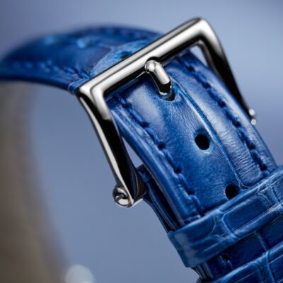 - Bracelet Material: Shiny blue alligator leather