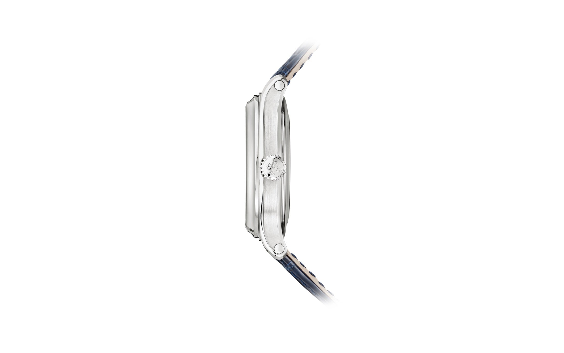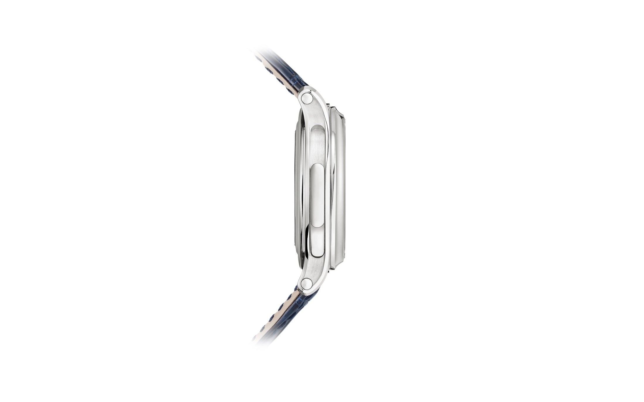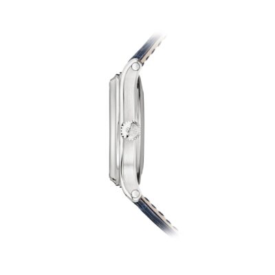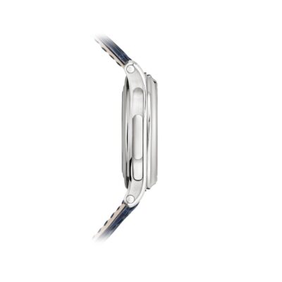 • Bracelet Material: Shiny dusk blue Alligator strap with square scales, hand-stitched