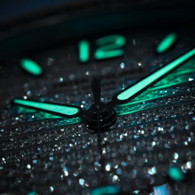 - Case material: 18K White Gold with 518 diamonds: ~2.52 cts.