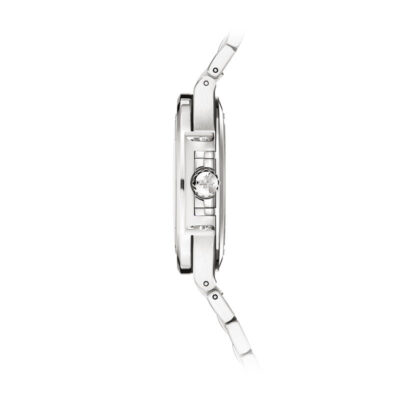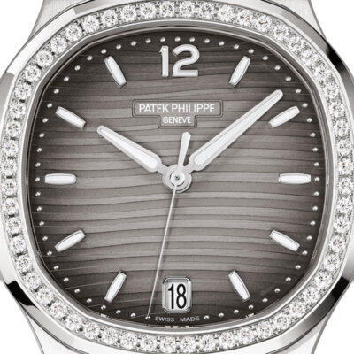 Discover the Patek Philippe Nautilus 7118/1200A-011, a stunning representation of elegance and precision craftsmanship. This women’s timepiece, meticulously crafted in stainless steel, boasts a 35.2mm case that exudes a modern and sophisticated charm, perfect for any occasion. The eye-catching gray opaline dial is adorned with a distinctive wave decoration, enhancing its visual appeal. It features applied numerals and hour markers in luminescent coating, ensuring excellent readability. The date display is subtly positioned at 6 o’clock, integrated seamlessly into the dial for a clean aesthetic. What sets this model apart is the dazzling bezel, adorned with 56 diamonds, totaling approximately 0.67 ct. This gem-setting not only adds a touch of brilliance but also underscores the luxurious appeal of the watch. Powered by the Patek Philippe Caliber 26‑330 S C, a self-winding mechanical movement known for its reliability and precision, this watch offers a power reserve of 35-45 hours. The sapphire-crystal case back provides a fascinating view into the complex workings of the movement, showcasing the exceptional engineering that defines Patek Philippe. The stainless steel bracelet complements the case with its polished and satin finish, and is equipped with a fold-over clasp for a secure and comfortable fit. The watch also boasts a water resistance of up to 30 meters, making it as functional as it is beautiful.