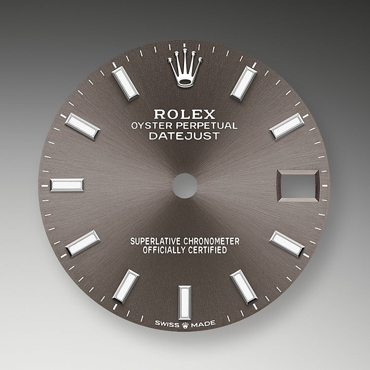 • Dial color: Dark grey dial with a fine sunrays and  Indexes of 18k White Gold with luminous fill as hour markers