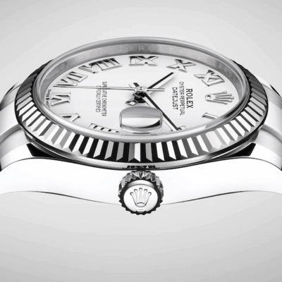 - Case material: White Rolesor – combination of Oystersteel and 18k White Gold
