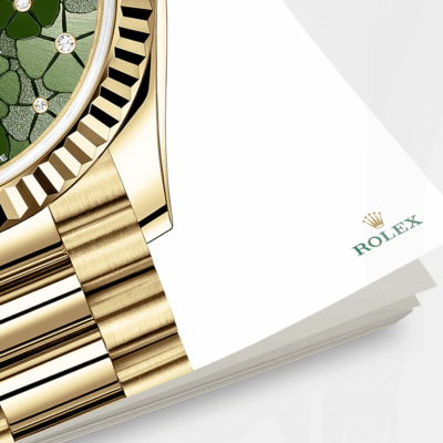 - Dial color: Olive green dial with floral motif and 24 Diamonds in 18k Yellow Gold settings
