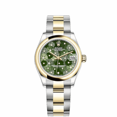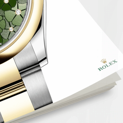 • Dial color: Olive green dial with floral motif and 24 Diamonds in 18k Yellow Gold settings
