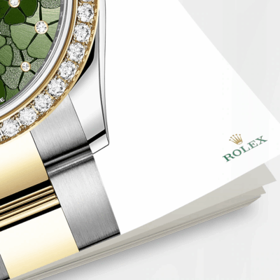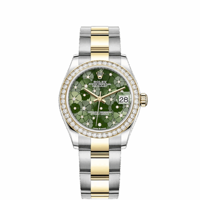 • Dial color: Olive green dial with floral motif and 24 Diamonds in 18k Yellow Gold settings