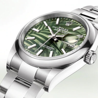- Dial color: Olive green, palm motif