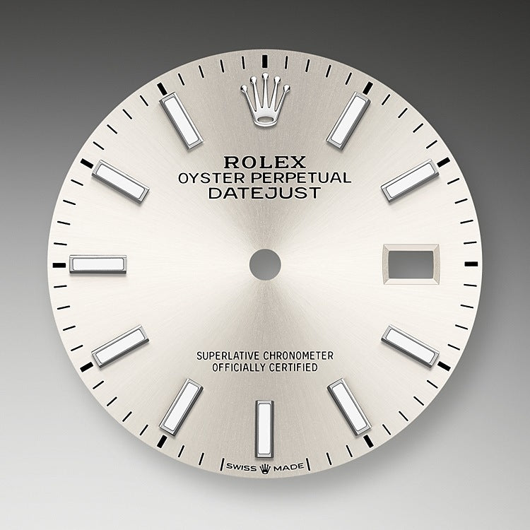 Rolex Datejust 36 watch with polished Stainless Steel and 18k White Gold case, Reference 126234-0013. This model has Silver dial with a fine sunray finish and highly legible Chromalight display with long-lasting blue luminescence. The dial is adorned Rolex Crown logo of 18k White Gold at the 12 o’clock position, polished 18k White Gold hands, the hours and minute hands with luminous filled, applied 18k White Gold polished index hour markers with luminous fill. Fine printed minutes/seconds track on the dial perimeter. Date window with a “Cyclops” magnifying lens displayed at the 3 o’clock position. The dial closed by a Scratch-resistant Sapphire Crystal and solid case back made. The watch is equipped fluted fixed polished 18k White Gold bezel and polished Stainless Steel “Twinlock” crown with double waterproofness system. The watch is mechanical self-winding Manufacture Rolex 3235 contains 31 Jewels and has an approximate power reserve of 70 hours of power reserve. This model presented on Jubilee bracelet of brushed outer and polished center links Stainless Steel with a Folding Oysterlock safety clasp with Easylink 5 mm comfort extension link. The water resistance is up to 100m/330ft (10 ATM). Superlative Chronometer certified: the movement is COSC certified prior to casing, then it is subjected to a rigorous second test by Rolex after casing to ensure precision of +/- 2 seconds per day, power reserve, water-resistance and self-winding.