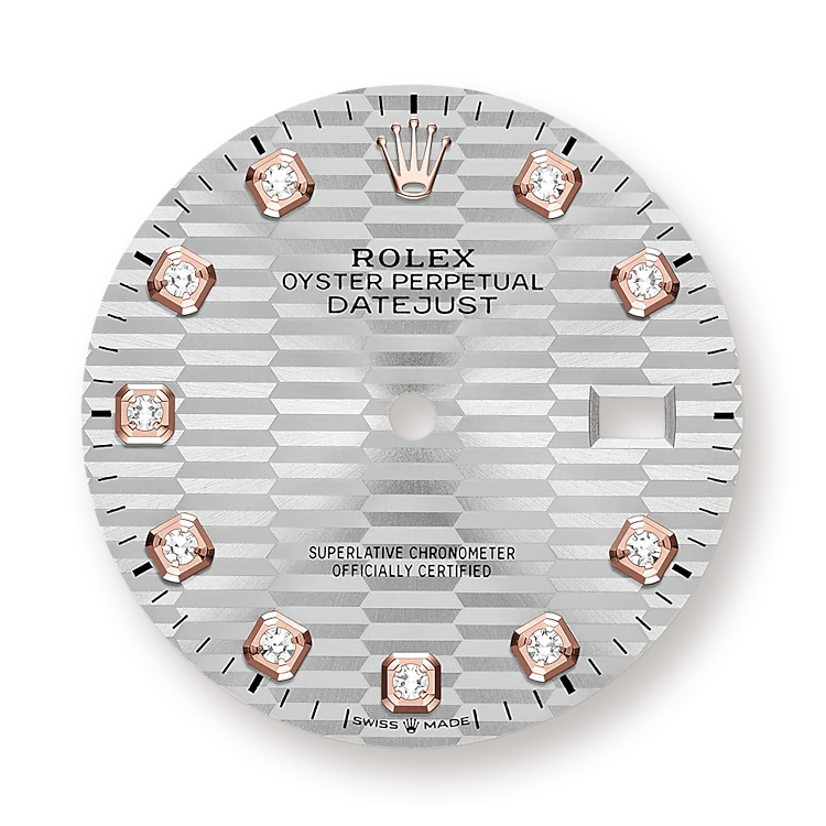 • Dial color: Silver dial with fluted motif and 10 Diamonds as hour markers framed in 18k Everose Gold