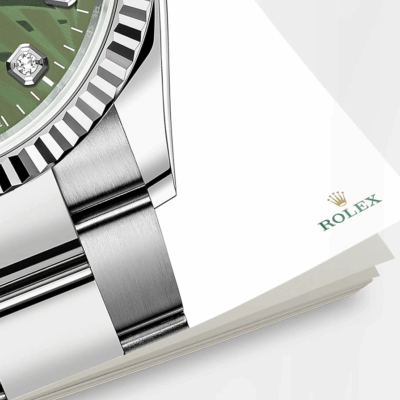 - Dial color: Olive green dial with palm motif and 10 Diamonds as hour markers framed in 18k White Gold