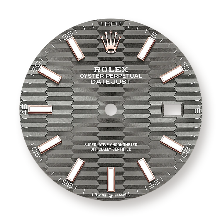 - Dial color: Slate dial fluted motif and Indexes of 18k Everose Gold with luminous fill as hour markers