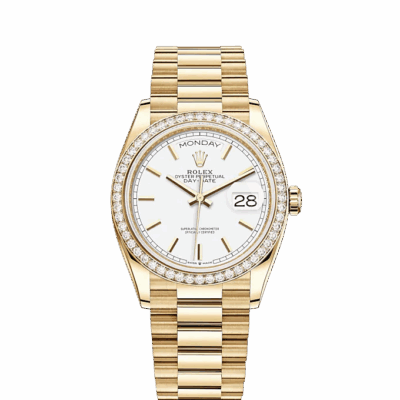 Unworn classic Rolex Day-Date, 36mm, 18k Yellow Gold, Ref# 128348rbr-0047 – luxury, elegance and practicality.