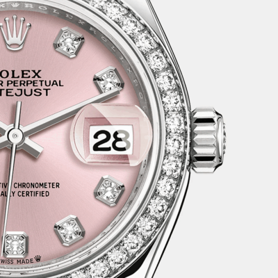 • Dial color: Pink dial with a fine sunrays and 10 Diamonds as hour markers framed in 18k White Gold