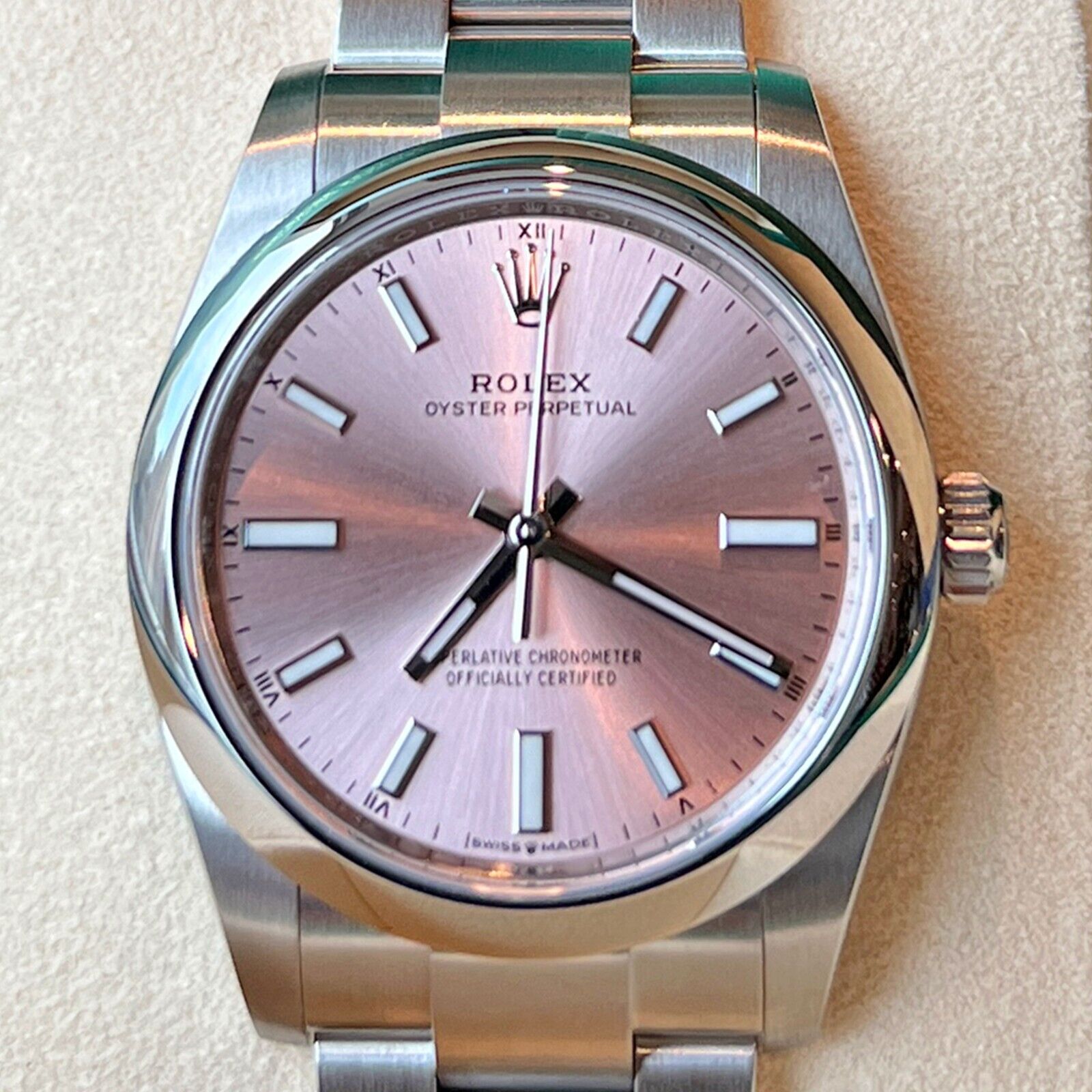 Rolex, Oyster Perpetual Ladies, Pink Dial, 34mm, Oystersteel, Ref# 124200-0004