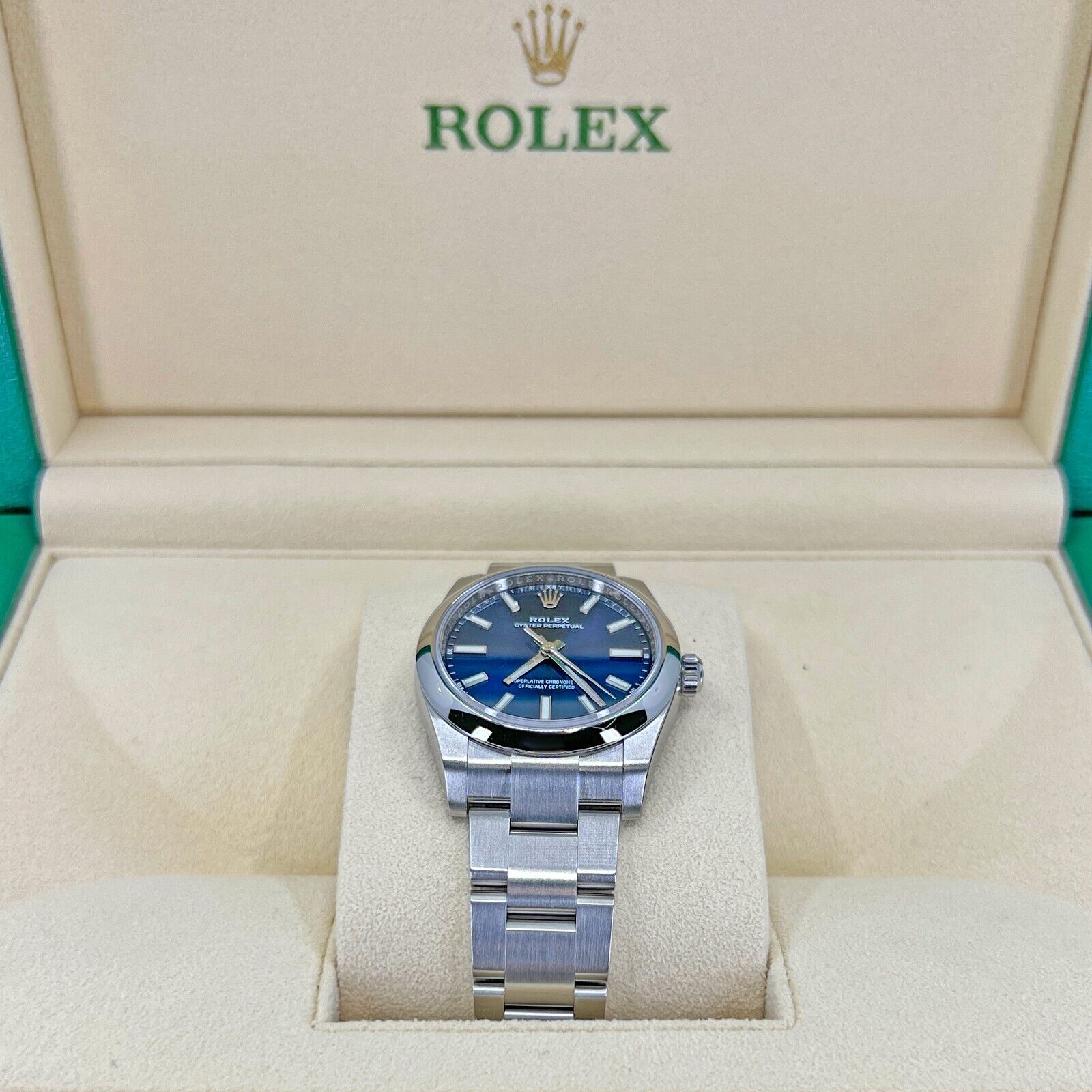 Rolex Oyster Perpetual No Date, Stainless Steel, 34mm, Bright blue, Oyster, Ref# 124200-0003