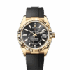 Unworn watch Rolex Sky-Dweller, 42mm, Oystersteel and 18k White Gold, Ref# 336934-0003. New for 2023, a true masterpiece of engineering. Elegant and versatile, this stunning timepiece is the perfect luxury accessory for the modern traveler. This superb chronometer features an Intense white dial, which is the perfect backdrop for the luminous 18k White Gold index hour markers and hands, making it easy to read the time even in low light conditions.  A well-readable minute scale is applied along the outer contour of the dial. The sophisticated multi-function display makes it easy to keep track of the time in two different time zones. The reference time is displayed in 24-hour format on an off-center dial, while the local time is read using the normal central hands. The annual calendar, named Saros, is powered by a patented mechanism and features an innovative display: the months of the year are shown in 12 windows around the circumference of the dial, behind the hour marker – the current month is displayed in red. The instantaneous date change is related to local time. The ribbed, easy-to-grip Triplock Oystersteel screw-down crown features a triple water-resistance system in and Rolex logo decorated. The dial is covered with a scratch-resistant sapphire crystal with anti-reflective coating and Cyclops lens at the 3 o’clock position. The fluted bezel in 18k White Gold is a true hallmark of Rolex. Bidirectional rotatable, it is part of the Ring Command system and, when interacting with the crown, allows the user to select watch functions one by one and adjust them easily, quickly and simply. The model is powered by the innovative in-house Rolex mechanical movement, caliber 9002, contains 29 jewels and has an approximate power reserve of approximately 72 hours. This delightful timepiece is presented on an Oyster bracelet with one-piece three-piece links in Oystersteel. Thanks to the new hidden fastening system under the bezel, there is a perfect visual continuity between the bracelet and the case. The bracelet features an Oysterclasp folding clasp with Rolex’s original Easylink patented quick extension system of approximately 5mm for added comfort in all circumstances. Water resistant up to 100m/330ft (10 ATM).