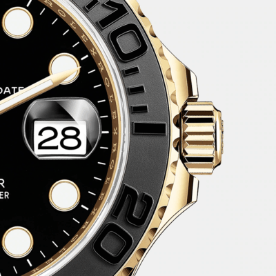 - Dial color: Black dial with a applied 18k Yellow Gold hour markers (triangular, round and rectangular) that are treated with Rolex’s very own luminescent material known as Chromalight