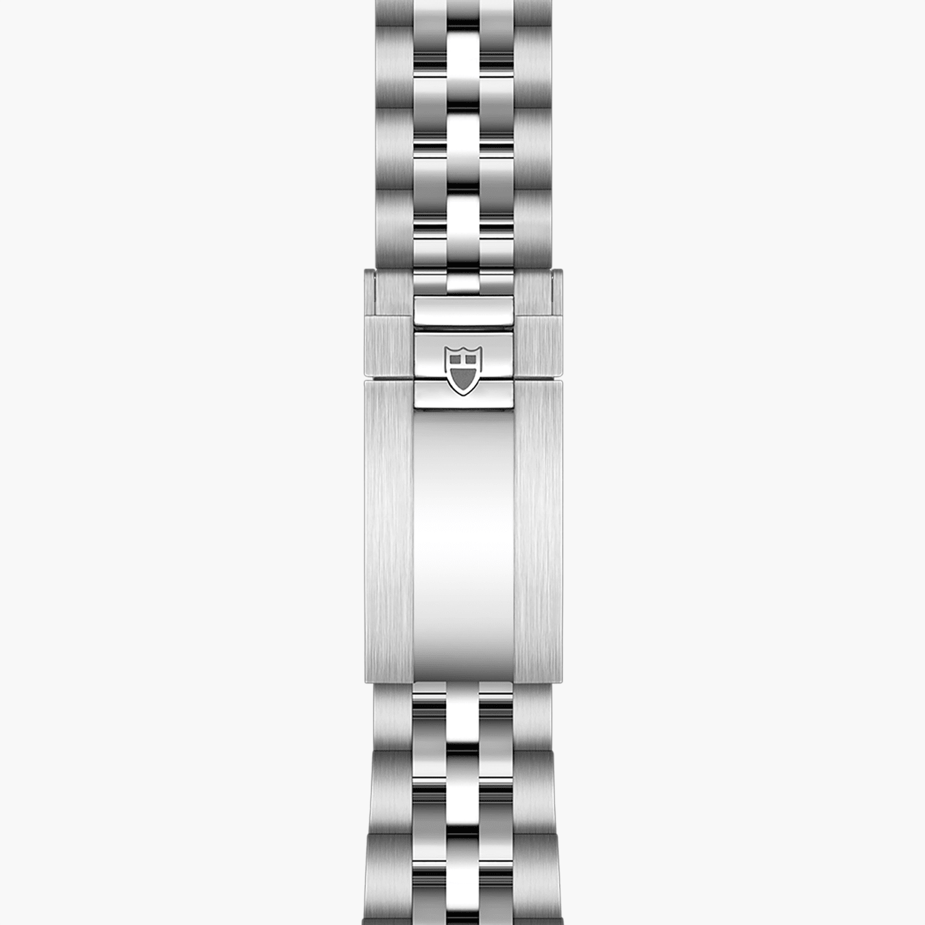 Unworn watch Tudor Black Bay, Ref# M7941A1A0NU-0003. This TUDOR model has a sophisticated appearance thanks to its polished and satin-finished stainless steel case with a diameter of 41 mm. A charming black domed dial, making it easy to tell the time even in the dark, cleverly complements it. It features large luminous round silver hour markers, rectangular applied hour markers at 3, 6 and 9 o’clock, and a large luminous triangle at 12 o’clock. On the outer perimeter of the dial, there is a graceful Silver-toned minute-second scale. Spectacular completion of an amazing picture – silver-toned arrows with a luminous fill. The hour and second hands feature the distinctive angular tips known to collectors as the “Snowflake”. The elegant silver-colored central seconds hand with a luminous ring near the hand and a luminous counterweight ring looks harmonious. Complementing all this charm is a Screw-down Stainless Steel winding crown, with the TUDOR rose in relief. The dial closed by a Domed Scratch-resistant Sapphire Crystal. The watch mechanism is sewn up by a solid case back. Thanks to the 60-minute unidirectional with polished and satin finish Stainless Steel perfectly bezel with black aluminium insert, the watch face looks not only elegant, but also quite glamorous. The model is equipped with a manufacture Tudor Self-winding mechanical movement Calibre MT5602-U (COSC), contains 25 jewels and has an approximate power reserve approximately of 70 hours. This incredibly beautiful timepiece, a masterpiece of the manufacturer, is presented on a This colorful timepiece is presented on a stainless steel Five-link bracelet with five links, two wide side links with a satin finish and three medium narrow links with a polished finish. It fastens with a polished and satin finish with TUDOR “T-fit” clasp to ensure maximum comfort on the wrist. Water resistant up to 200m /660ft (20 ATM).
