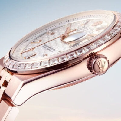 Introducing unworn Rolex Oyster Perpetual Land-Dweller 36, reference 127285tbr-0002—a bold addition to Rolex’s lineup, unveiled at Watches & Wonders 2025. This model seamlessly blends classic design elements with cutting-edge technology, offering a timepiece that is both elegant and robust. The 36mm Oyster case crafted from 18k Everose Gold —a signature Rolex design element. The intense white dial showcases a unique honeycomb motif, achieved through advanced femtosecond laser technology, adding depth and texture. He is adorned with Chromalight display, providing long-lasting blue luminescence for optimal legibility in low-light conditions. Luxurious 10 baguette-cut diamonds as hour markers and specially developed luminescent hands contribute to the watch’s contemporary aesthetics and are covered by scratch-resistant sapphire crystal. The traditionally positioned date indicator at 3 o’clock with Cyclops lens and the classic minute track surrounding the dial enhance functionality. Crafted for reliability in any environment, the watch features a robust screw-down crown equipped with Rolex’s Twinlock double waterproofness system. This ingenious construction combines two sealed zones—one inside the crown tube and one inside the crown itself—ensuring airtight protection against water infiltration. The flawless bezel of this watch, expertly set with 44 baguette-cut set diamonds, is a testament to the harmonious fusion of craftsmanship and art. Surgically crafted, each precious diamond is set with unwavering precision in a specially prepared bezel housing. The uniform height and flawless alignment of each stone to precise symmetry are a reflection of Rolex’s uncompromising standards. At the heart of the Land-Dweller 36 lies, the newly developed Rolex Calibre 7135 contains 39 jewels. This self-winding mechanical movement operates at a high frequency of 5Hz (36,000 beats per hour) and boasts a power reserve of approximately 66 hours. The movement features the innovative Dynapulse escapement, constructed from silicon, enhancing efficiency and resistance to magnetic fields. Visible through a transparent sapphire case back—a first for Rolex—the movement also includes a Syloxi hairspring, ceramic balance staff, and Paraflex shock absorbers, ensuring precision and durability. The watch is fitted with a newly designed integrated Flat Jubilee bracelet, comprising five-piece solid links in 18k Everose Gold. The bracelet features polished center links and satin-finished outer links with polished edges, providing both comfort and a refined appearance. A concealed 18k Everose Gold folding Crownclasp ensures a seamless look and secure fit. Whether in daily wear or conditions that are more demanding, the Twinlock system delivers exceptional resistance and durability, preserving the integrity of the timepiece to a depth of up to 100m/330ft (10 ATM).