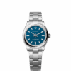 Introducing unworn watch Rolex Oyster Perpetual, 28mm, 276200-0011 is a stunning testament to timeless sophistication and meticulous craftsmanship. Its allure lies in its understated elegance and remarkable precision, making it a symbol of refined taste and enduring style. Crafted from Rolex’s signature Oystersteel, the case exudes strength and durability, while maintaining a sleek and modern aesthetic. The smooth Oystersteel bezel with polished finish enhance its timeless appeal, ensuring it stands the test of time with grace and poise. The captivating striking Blue dial offers a refreshing and contemporary aesthetic, setting a distinctive tone for the timepiece. Enhancing both form and function, it features Rolex’s highly legible Chromalight display—an advanced luminescent technology that emits a striking blue glow in low-light conditions. This long-lasting luminescence ensures optimal readability at any hour, making the dial not only beautiful but also exceptionally practical. The subtle blue hue paired with radiant blue accents creates a refined visual contrast, perfect for those who value elegance infused with innovation.  He closed by a Scratch-resistant Sapphire Crystal and solid case back made. The minimalist design features luminous silver-tone baton hour markers and hands, providing exceptional readability in any lighting conditions. The self-winding mechanical watch is powered by Rolex Manufacture Caliber 2232, contains 31 jewels and has a power reserve of approximately 55 hours, ensuring unrivaled precision and reliability, as well as meeting the demands of modern life, ensuring accurate timekeeping at all times. Combining form and function, the Oyster, three-piece solid links bracelet offers exceptional comfort and a secure fit, while the Oysterclasp ensures effortless adjustment for a customized wearing experience. The water resistance is up to 100m/330ft (10 ATM).