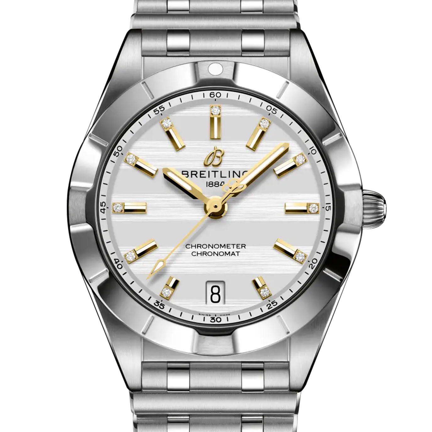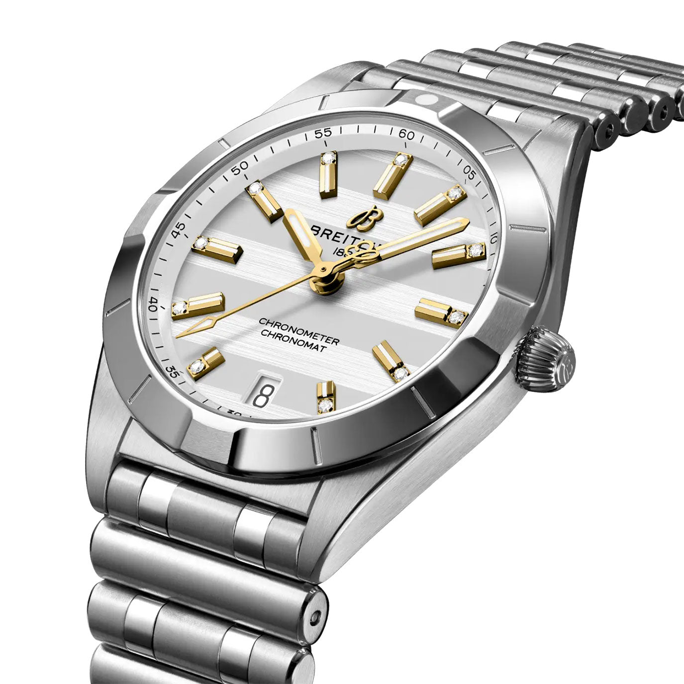 The Breitling Chronomat 32 Six Nations England is a sophisticated timepiece that blends contemporary precision with timeless elegance. With its compact 32 mm stainless steel case and polished metal bracelet, this watch offers a sleek profile ideal for both casual and formal wear. Powering the Chronomat 32 is the Breitling Caliber 77, a COSC-certified SuperQuartz™ movement known for its remarkable accuracy—ten times more precise than standard quartz. The thermocompensated electronic movement also features an end-of-life (EOL) indicator and a practical date aperture. The watch’s durability is reinforced with a screwed-in caseback, 100 m water resistance, and a cambered sapphire crystal glareproofed on both sides. Light on the wrist but rich in craftsmanship, it’s a reliable and stylish choice for everyday luxury.