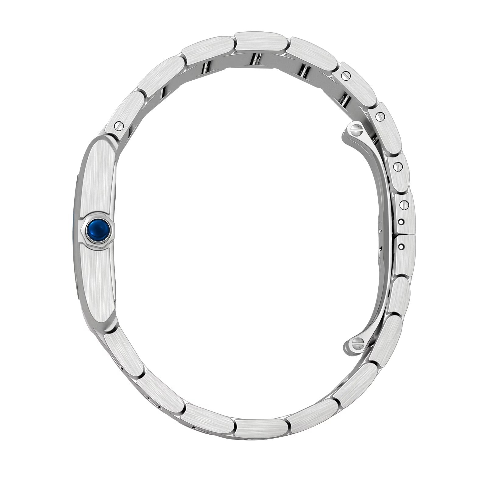 Elevate your style with the Cartier Tank Francaise de Cartier Medium Watch — Ref# WSTA0074 — a flawless fusion of fine jewelry and precision watchmaking. This unworn timepiece embodies timeless glamour, refined craftsmanship, and the unmistakable elegance that defines the Cartier legacy. Crafted with a polished Stainless Steel case and highlighted by a fixed Stainless Steel bezel, this Medium -sized Tank Francaise model measures 32mm x 27mm (including lugs) and rests just 7.1mm thin on the wrist, offering a sleek and graceful profile. The crown, also fashioned in Stainless Steel, is adorned with a synthetic blue spinel cabochon, a distinctive Cartier hallmark. The Silvered dial is both classic and sophisticated, adorned with silver-tone Roman numeral hour markers, a fine minute track, and blued steel sword-shaped hands — all signature Cartier design elements. Protected by a scratch-resistant sapphire crystal, the dial remains pristine and legible through time. Driven by a reliable Swiss quartz movement, this watch ensures effortless, maintenance-free performance for daily wear. The brushed Stainless Steel bracelet continues the radiant aesthetic, secured with a hidden folding clasp that preserves the watch’s seamless elegance. With a water resistance of 30 meters (100 feet) and a solid case back, the Cartier Tank Francaise de Cartier Medium WSTA0074 is not just a watch — it’s a statement of enduring sophistication, ideal for women who appreciate timeless luxury with a bold edge.
