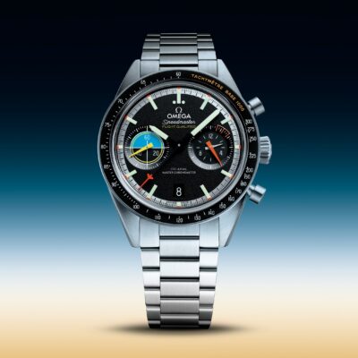 Introducing the unworn watch OMEGA Speedmaster Pilot Ref# 332.10.41.51.01.002 a legendary timepiece reimagined for a new generation of explorers. Crafted in brushed stainless steel, the 40.85 mm case frames a grained matt black dial that fuses aviation-inspired design with space-age innovation. The rhodium-coloured outer ring and bold, block-style hour markers—filled with white Super-LumiNova emitting a vivid green glow—deliver a striking contrast and exceptional legibility in low light. The dial’s cockpit-inspired layout includes two standout subdials. At 3 o’clock, the 60-minute and 12-hour recorder mimics a “burn rate” indicator with its triangular matte-orange hand and high-contrast white numerals. At 9 o’clock, the Small Seconds display takes on the look of a targeting sight, complete with a matte-yellow hand and a blue “artificial horizon.” Completing the flight-instrument aesthetic are matte black PVD-coated hour and minute hands, filled with luminous blocks, and a vivid orange central chronograph hand tipped with an airplane silhouette. The iconic tachymeter scale, with the historically significant “Dot Over Ninety,” is set into a black aluminium bezel ring. The date display is seamlessly integrated at the 6 o’clock position, offering a balanced and refined touch that enhances both legibility and design symmetry. Scratch‑resistant sapphire crystal with anti‑reflective treatment on both sides ensures exceptional durability, preserving the pristine appearance of the dial. At its core beats the Co-Axial Master Chronometer Self-winding Calibre 9900, with beating at 28800 vph, with 54 jewels and a 60-hour power reserve drives exceptional, magnetic resistance, and reliability worthy of the stars. The watch is paired with a secured by a brushed flat-link stainless steel bracelet with OMEGA’s patented screw and pin system. He fastens on a folding clasp with a diving extension. Presented in a special travel pouch, this edition also includes a strap-changing tool and a robust NATO strap woven with KEVLAR® threads, making it ready for takeoff wherever your journey leads. Bold, luxurious, and born from a rich legacy among the stars, this OMEGA Speedmaster more than just a watch—it’s a testament to human exploration. With a water resistance of 10 bar (100 metres / 330 feet), it merges iconic design with everyday durability, making it as ready for urban adventures as it is for the unknown.