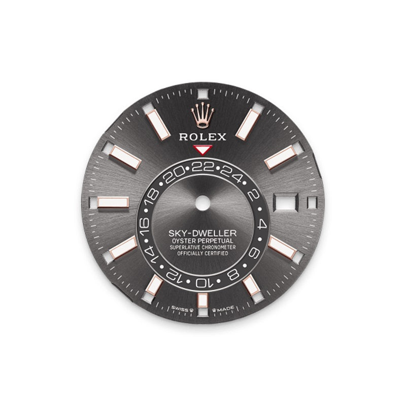 Introducing the Rolex Sky-Dweller, an epitome of sophisticated engineering and luxurious design. This exceptional timepiece features a 42mm 18K Everose gold case, exuding timeless elegance. The charming bright grey dial is adorned . The fluted bezel and the scratch-resistant sapphire crystal further enhance its classic appeal. Powered by the Rolex Caliber 9002, the Sky-Dweller boasts an impressive power reserve of approximately 72 hours. The watch is also water-resistant up to 100 meters, making it both practical and stylish. The Everose gold Jubilee bracelet with an Oysterclasp and Easylink comfort extension link ensures a secure and comfortable fit. Offered in unworn condition, this Sky-Dweller comes as a full set with the original Rolex box, booklets, and a Rolex warranty card dated 2025. Secure this remarkable timepiece today and experience the perfect fusion of advanced technology and timeless elegance. Perfect for any collection, the Rolex Sky-Dweller is ready to accompany you on any journey, whether for business or leisure.